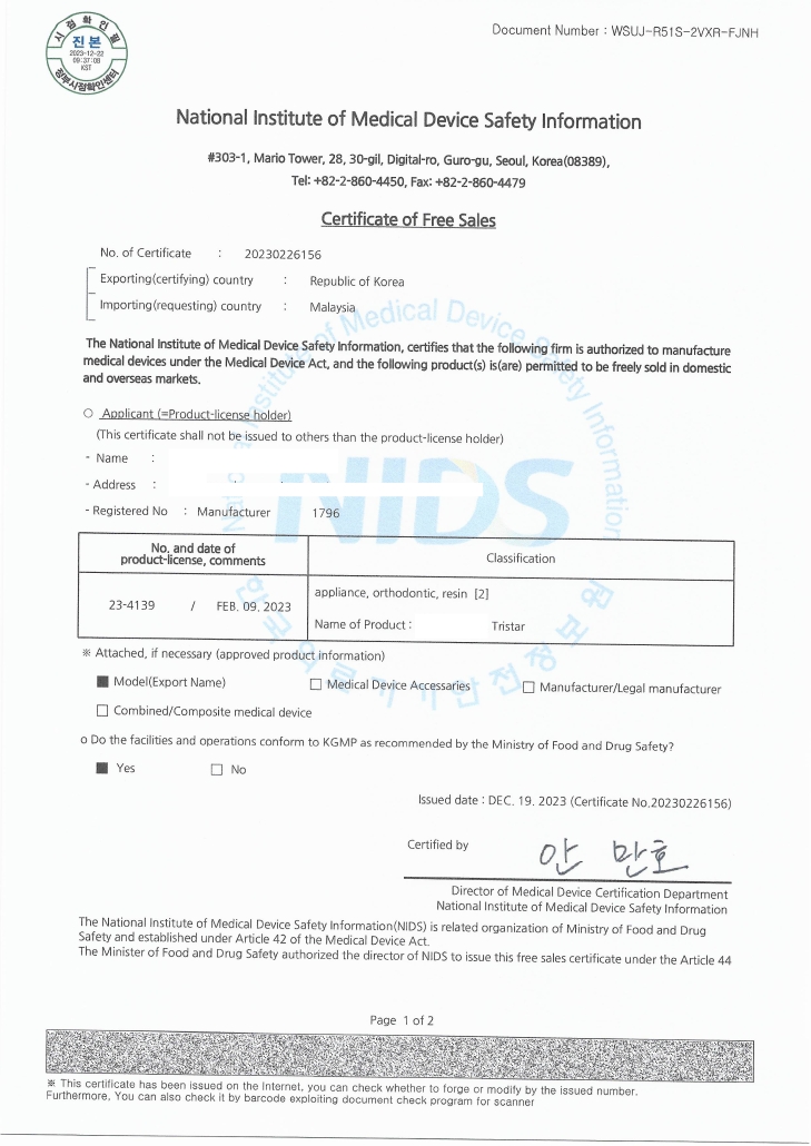 Indications for use statement Tristar Thermoformable Sheet Materials and their derivatives are intended for prescription use in the fabrication of orthodontic and dental appliances.